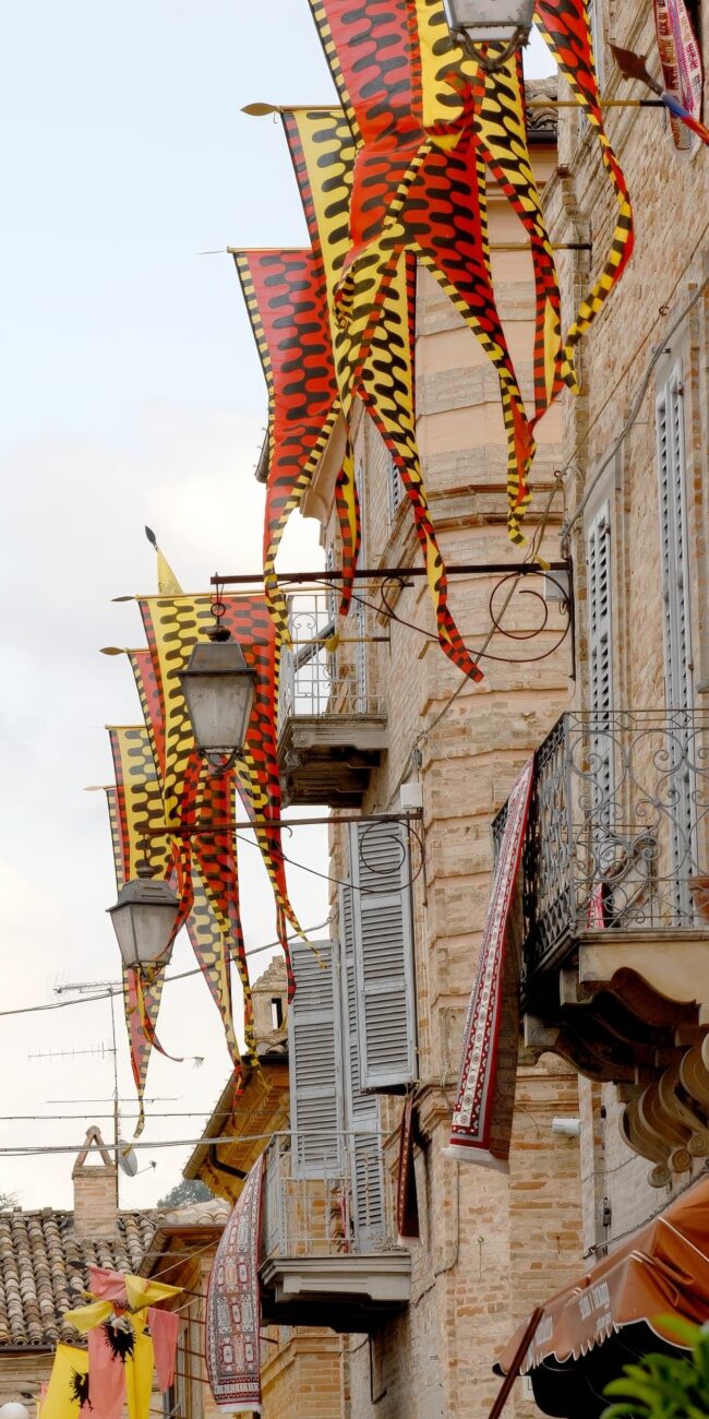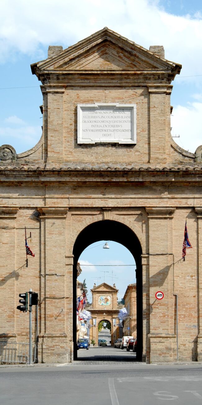 The founding of Servigliano is attributed to Pubblio Servilio Rullo, a Roman tribune of the 1st century BC. Remains of Roman construction are visible on the hill in the hamlet of Curetta, which preserves the legacy of the early medieval settlement: Il Paese Vecchio. Around 1758, the hill began to collapse due to water infiltration. In 1769 Pope Clement XIV decided to rebuild the village on the plain, near the Convent of the Friars Minor Observant where large fairs had been held since the 1300s. The architect Bracci designed a unique urban layout, inspired by the Ideal City, with a quadrilateral-shaped model. Servigliano is awarded the title of one of the “Most Beautiful Villages in Italy.”